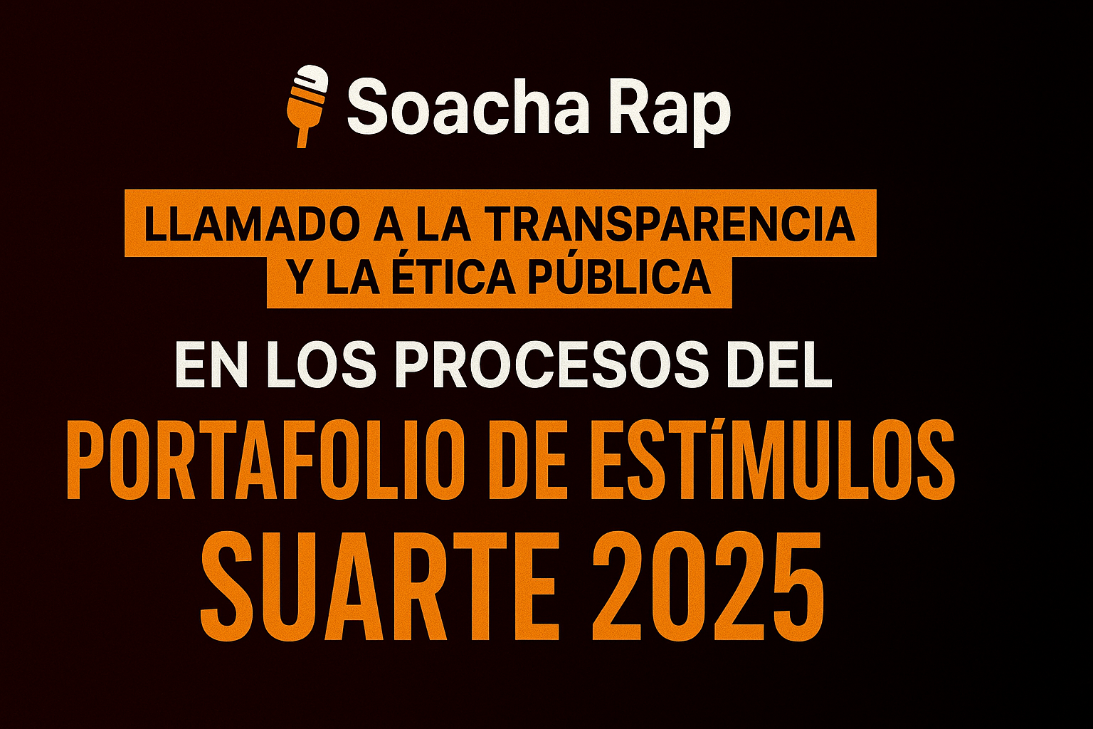 El Portafolio de Estímulos SUARTE 2025 es una iniciativa clave de la Alcaldía Municipal de Soacha y su Secretaría de Cultura y Turismo para fortalecer el ecosistema cultural del territorio. Desde Soacha Rap valoramos profundamente estas instancias públicas para la visibilidad, formación y circulación del trabajo cultural.